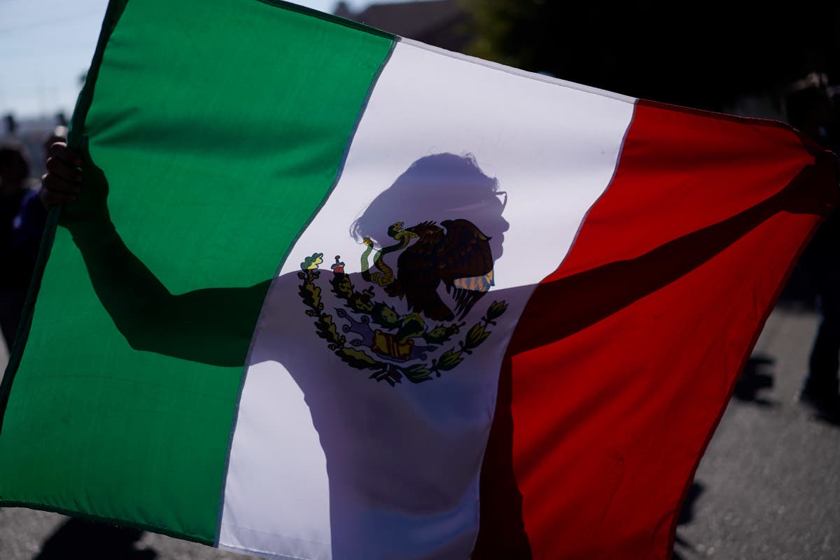 A demonstrator holds a Mexican flag outside a migrant shelter to protest the presence of thousands of Central American migrants in Tijuana, Mexico. (AP Photo/Ramon Espinosa)