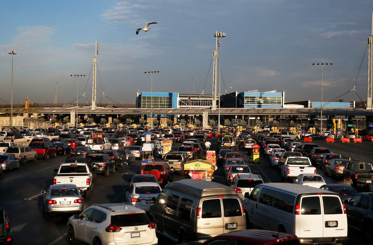 Drivers wait to cross the Mexico-U.S. border from Tijuana, Mexico, Monday. (AP Photo/Rodrigo Abd)
