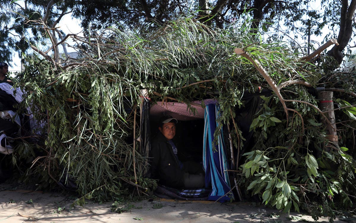 Honduran migrant Mauro Hernandez rests inside a makeshift tent at a temporary shelter in Tijuana, Mexico. (AP Photo/Rodrigo Abd)