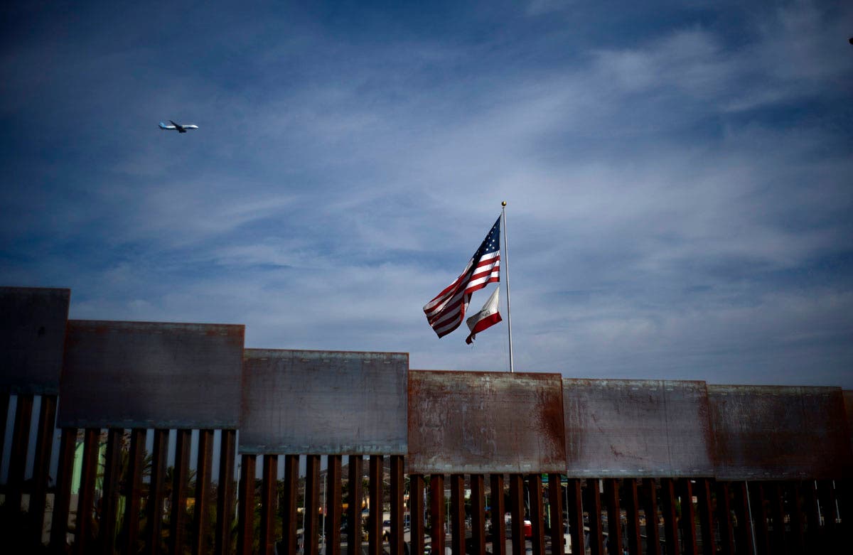 U.S. and California state flags fly behind the border wall, seen from Tijuana, Mexico. Tensions have built as nearly 3,000 migrants from a caravan poured into Tijuana in recent days after more than a month on the road β and with many more months likely ahead of them while they seek asylum in the U.S. The federal government estimates the number of migrants could soon swell to 10,000. (AP Photo/Ramon Espinosa)