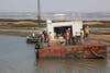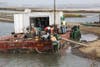 Dredging operations to move sediment were completed in August. Channels were dug out as well to improve tidal flow. On Thursday, crews and a crane removed dredging equipment and a barge from the ponds.