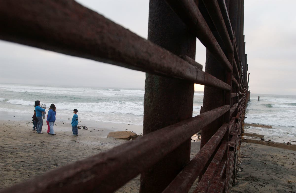 --City News Service/PHOTO: SAN YSIDRO, CA - FEBRUARY 1: People in Mexico are seen through the U.S./Mexico border fence at Border State Park February 1, 2003 west of San Ysidro, California. It was originally hoped that the park would become a bi-national peace and friendship park. The U.S. government is now planning to replace the single fence with three parallel fences in a 200-foot swath paralleling the border, turning the small seaside park into a 'no-man's land'. The state park is closed over concern by rangers of unsafe runoff water flowing from Mexico. Residents of Playas de Tijuana, Mexico worry that the project's 200-ft. to 900-ft. wide pyramid berm to fill in a canyon, will drive sewage runoff back and flood the community of 25,000. (Photo by David McNew/Getty Images)