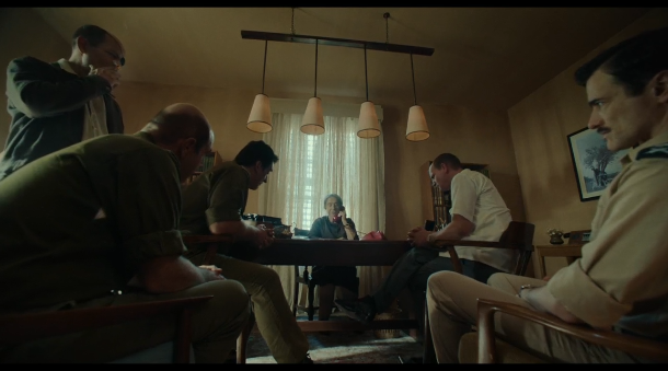 The pain in many scenes is clear on Mirren’s character’s face and it comes straight through the screen. It was not necessary to show death because the sounds coming from the short-wave radio that Golda and military staff hear are heartbreaking. Continual decision-making military plans are done sitting in Golda’s home where cake and cigarettes are served in large supply and it adds to the authenticity of the story director Nattiv and writer Nicholas Martin are trying to convey.
