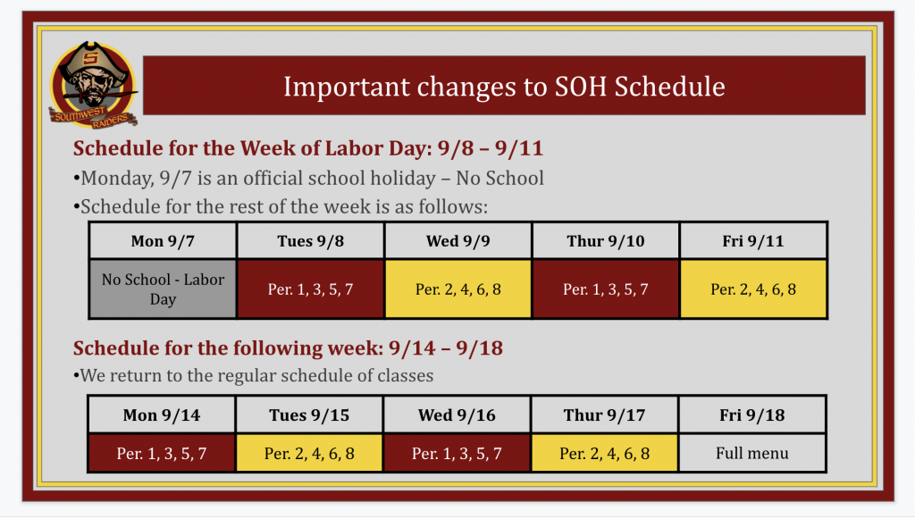 SOH Schedule Changes