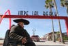 Meet Kermit Brown, aka Froggy, and his wife, Anne. Brown pulls advertisement-covered historic wagons up and down Palm Avenue with his motorized wheelchair.