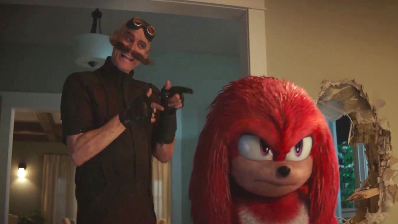 Dr. Robotnik (Jim Carrey) is making his own plans to get off the planet Sonic sent him to. Sending out a signal, it is answered almost right away, and he meets Knuckles (voiced by Idris Elba) who is looking for the most powerful gem in the universe. This intrigues Dr. Robotnik, and he convinces Knuckles to get him back to earth to find what he is looking for.