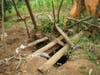The third home we visited was that of a grandmother who took her grandchildren in when their parents were killed in an auto accident. This woman grows coffee trees on her property and spends most of her earnings on alcohol. Their latrine is a shallow pit with boards placed across which floods the surrounding area when the heavy rains come. The chickens and goats sleep in the house with the family because she is afraid the neighbors will steal their animals. The children are all barefoot. Disease is rampant.
