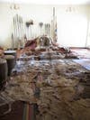 Had a friend visiting from the States. We were able to visit the palace and see the throne room. Did not get to see the king, but he resides there. Omukama means King in Runyoro. The king is Omukama Solomon Iguru Gafabusa and he is King of Bunyoro (this area) and the Banyoro (people of this area). Musevini is the President of Uganda but they have kings of all the old kingdoms. When the king is in, they pound a drum and the people of Hoima can come to see him. They may ask for blessings, tell him their complaints and problems, or simply share their lives. The throne room was very cool with spears, animal skins, and drums. When the king enters the throne room, he jumps over an ivory tusk which symbolizes riches. When he takes the throne they pound the drums 9 times and the chair (throne) has 9 legs. The number 9 seems to symbolize generosity and unity. The spears represent the different eras of metal (bronze, steel, iron) and there were bows and arrows in beaded quivers. The crowns are made from beads and a type of thin arrow and the design represents fertility.