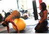 You can also help your balance by sitting on the ball and then raising one leg out straight.Hold it for two seconds and then lower it. Try this ten times with one leg, then go to the other leg. If you want to work the shoulders you can raise your hands over your head while holding the leg up.