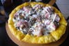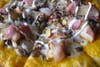Potato Gold listed tomato sauce, sweet potato mousse, mushrooms, ground beef, corn, onion, potato, cheddar, bacon, sour cream, and nacho chips as ingredients. Sweet potato mousse? Nacho chips? Sounded like frou-frou with a side of white trash. Being from New Hampshire, I could get with that.