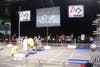 The competition was intense, with robots fighting for shapes and position, sometimes littering the field with metal bits. An energetic crowd filled the stands while students clustered along the sidelines cheering for their alliance and their own robots. Furry school mascots showed their support while rock music pumped up the vibe, far more like a Staples Center sporting event than a high school science fair.