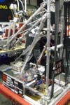 This year’s “Logo Motion” game required robots to maneuver a 27 by 54 foot “field” while blocking and racing one another. Schools played in competing alliances each consisting of three robots, controlled by students using joysticks from behind a clear, safety partition. Alliances competed to hang as many plastic, inflated shapes as they could on to pegs set above the field during a two minute and 15 second match. The higher a team hung a shape, the more points their alliance received.