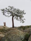 With the darkness of early morning, the wind subsided, the clouds settled, and Chilao received a dusting of snow, briefly resembling the forest as it used to be. But underneath the quickly fading veil of white, the ground is dry, the vegetation stressed, the flowers few and small.