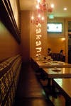 The space is modern but warm, with funky red glass chandeliers and smooth, light wood. There’s a back room that you think is actually a mirror until you realize it’s not. There's a bar to sit at, and a small patio. It’s classy, well done, and feels like a hip, happening nightspot for an elegant crowd.