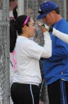 San Marino players wore white and La Cañada players wore light pink, each of the uniforms representing breast cancer awareness.