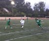 Just before halftime, St. Francis was awarded a free kick near the sideline taken by