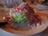 Taylor’s menu could very well be a prop from the set of Mad Men. Seemingly based on FDA recommendations prior to the dietary desecration of the health values of white bread and heavy cream, Taylor’s menu is an Atkins’ devotee’s dream. While excellent seafood choices, such as halibut and lobster tail are provided, Taylor’s is a steakhouse, after all, and a traditional one at that. There are numerous cuts and styles of steak, which our server patiently explained, but there’s nothing edgy or modern on the menu, not even a mention of Kobe or grass-fed. Instead, classic choices like boneless rib eye, London broil, sirloin pepper steak, and prime rib tempt. Mushroom bordelaise, steak butter, horseradish, and au jus catch the eye. Corn with peppers was offered as a vegetable choice, along with creamed spinach or tomatoes. The baked potato comes with butter and sour cream. This was how America ate when it was creating suburbs and booming out kids, fueled on post-war optimism, giant cars, and space exploration. No wonder my parents could brag that when they were growing up they were always members of the clean plate club. Who wouldn’t be?