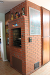We reviewed several options for the cabinet: stained or painted wood. Custom birch wood cabinets were selected to add warmth to the room. Along the perimeter walls a light speckled Caesarstone countertop provides a durable work surface with ease of maintenance. The porcelain tile backsplash picks up the rich red/ brown tones and adds silver highlights that complement the stainless appliances. The contrasting brown/black Caesarstone on the expansive, two level island provides prep surfaces as well as an informal counter seating area. The use of 2 countertop colors adds visual interest to the space.