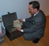 At the 's appraisal event on Tuesday, Bonhams auction house appraiser Paul Fisher opened up a consigner's "treasure chest" and discovered vellum documents written from the 17th through 19th centuries.