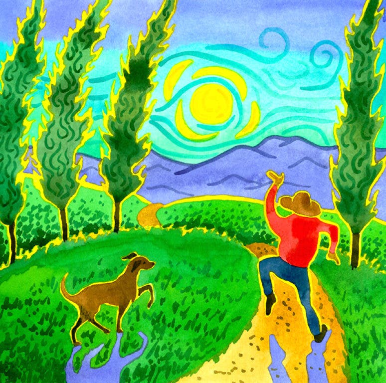 I have a childlike quality to what I paint. I used to try to overcome that, but now I embrace it—I am childlike. I love to see the world through my own lens, in the way I want to see it. I like to create art that is on the whimsical side. I can copy objects almost as well as anyone, but realism is a bore to me. What I look for when I look at a painting is the unique expression of the artist herself and a spirit being conveyed. I love it when I see someone who has the courage to do something unique, but not simply for uniqueness sake.