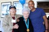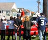 Corona del Mar residents Gary and Julie Crisp, owners of Costa Mesa-based C2 Imaging, threw their seventh annual game day party for 400 members of the military at American Legion Post 291 in Newport Beach. One hundred sixty-two Marines from the 5th Regiment at Camp Pendleton were bused to the party, and about 250 veterans of wars dating back to WWII came for the fun, football, and personal connections. Three World War II veterans were in attendance: Ted Marinos of Costa Mesa, Paul Camerzell of Newport Beach, with his wife Betty, and Bill Bowermaster of Huntington Beach with his wife Greta.