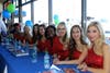 In addition to viewing the big game on six jumbo flat-screen TVs, guests were treated to steaks, chicken, hamburgers, hot dogs, drinks, desserts, and cigars, and offered ping pong, boxing, mechanical bull-riding, manicures, cruises on five Lear electric boats, raffle prizes, manicures, barber services, and massages. Clippers dance team cheerleaders signed posters and posed with Marines. Greeting guests and signing autographs were sports stars Dain Blanton, 2000 Olympic beach volleyball gold medalist, Keith Erickson, who played for the Lakers, Phoenix Suns, and Chicago Bulls, John Vallely, former UCLA Bruin under Coach John Wooden and former Atlanta Hawks and Houston Rockets player, and Mexican-American pro boxer and former WBC super welterweight division champion Mia Rosales St. John.