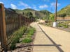 - Wide multi-use trails made from decorative concrete and decomposed granite to create a pedestrian-friendly environment, including many bicycle racks and rammed-earth seat wall benches