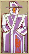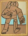 In Was Woo, a man woos a woman with a bouquet of flowers and his piano skills. The woman looks like she just got off her stool and started dancing. So focused on the sounds made from his fingers—the lines of his rapid fingers obscuring the keys—the man is depicted without eyes behind his glasses. And the piano bench supporting his weight is rendered nearly one with the floor, indicative of the man’s rapture with the “woo,” that feeling of musical floatation, forgetting you were ever sitting down in the first place.