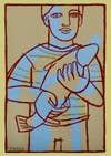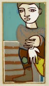 Her paintings capture moments of innocence, freedom, humility and passion revealed through eyes, lips, hands, bodies; movements revealed through the running and streaking of paint beneath bold lines (reminiscent of some indigenous art) on top of abstract geometric shapes, smears, and patterns of sometimes vibrant, sometimes subdued colors; the deliberate confusion of foreground and background as if to suggest a translucent quality to all materiality except some essence—some life-force illumined by Martin’s “less is more” restraint—at the core of the person in the painting.