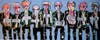 By contrast, LAX (also called Take Me Home), measuring more than 13 feet wide (the largest piece in the exhibit), portrays nine men standing shoulder to shoulder, all in black coats like matching limousine drivers, all staring straight ahead as if participating in a police lineup, holding signs with first names instead of anonymous strings of numbers. In their faces: sadness, madness, indifference, disappointment, impatience, as they await the arrival of whomever they’re driving home today. It’s easy to imagine one of them as a little boy, glowing in triumph while carrying a pepper fish, long before growing detached from the simple joys of youth, at least in this moment: nine men in charge of directions now occupied by an ironic haze of lostness. Except for maybe the guy waiting for Doug, the only driver not wearing a collared shirt is also the only one without a hint of dread on his face.
