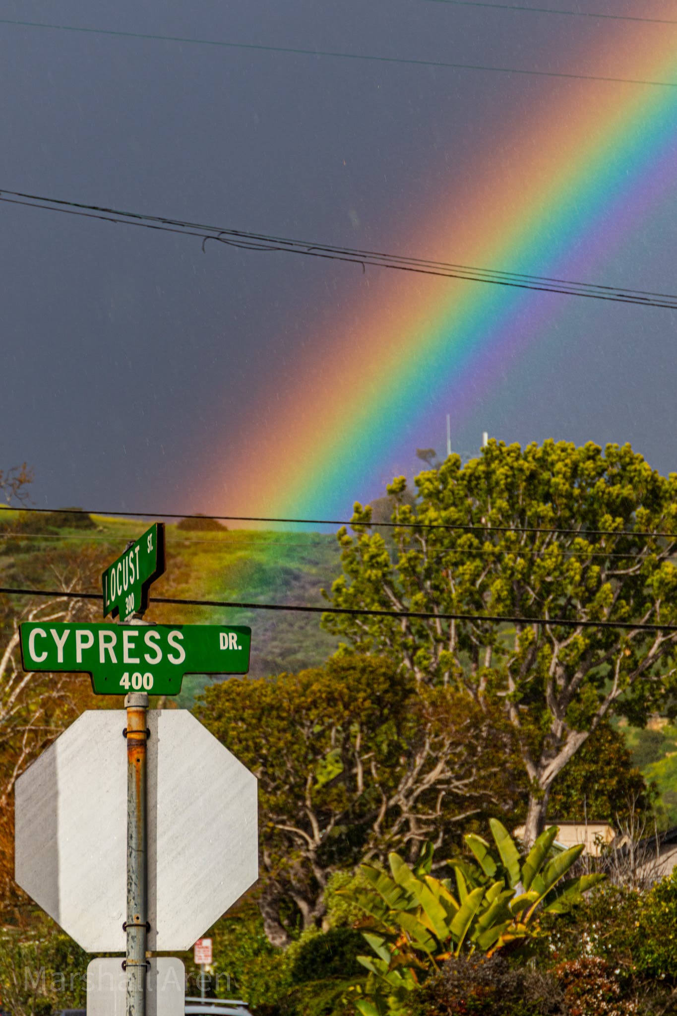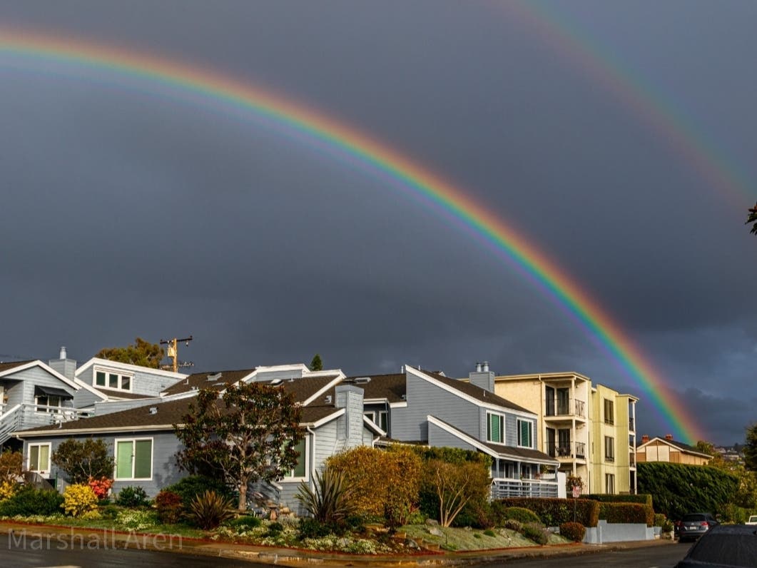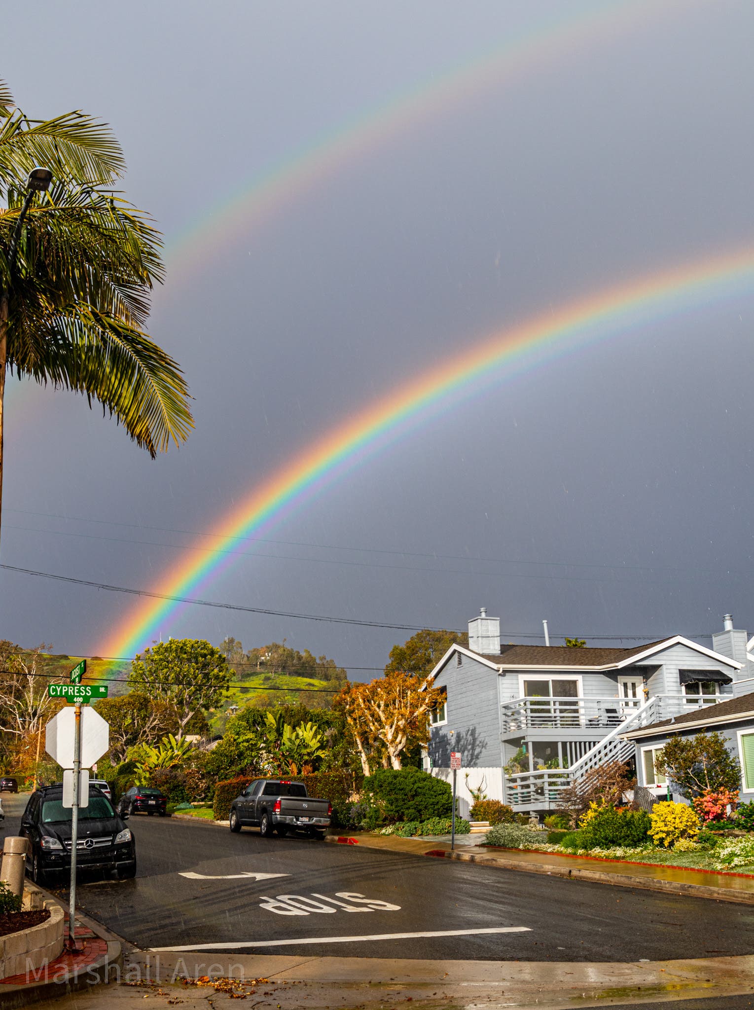 These dramatic photographs was shot by Laguna Beach resident Marshall Aren, who spotted the glorious double-rainbow from his home near Cypress Drive.
