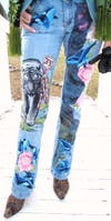 Fashion designer Aros Crystos is sharing his latest jeans designs Laguna Art walk) at Blast Consignment