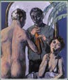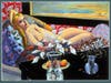 Phil Joanou classified his work into different series usually depicting either “Women” or “Allegory.” The women Joanou paints are not your stereotypical beauties, however, through the use of extremely feminine surroundings, wallpaper and robes full of blooming flowers, the beauty of the atmosphere reflects upon the women and their inner, eternal brilliance. Their internal emotions are shown through expressive facial gestures that range from contempt to content. Joanou celebrates women in their natural emotive states.