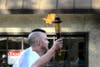After the torch was lit, the runners passed the torch to Newport Beach Police Chief Jay Johnson, who led the front of the pack when they began their run to Mariners Park in Newport Beach.