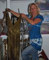 In her Laguna Canyon studio, Laguna Beach artist and designer Michelle Hutchinson proudly holds up a bikini she has created from hemp-based fabric. She excitedly explains why hemp material is so much better to use for a bikini than other fabrics.