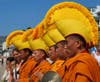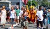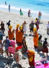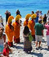 Then the monks led the people outside. The group paraded down St. Anns Drive, turned left on Coast Highway, crossed at Thalia, then walked down the stairs to the Pacific Ocean.
