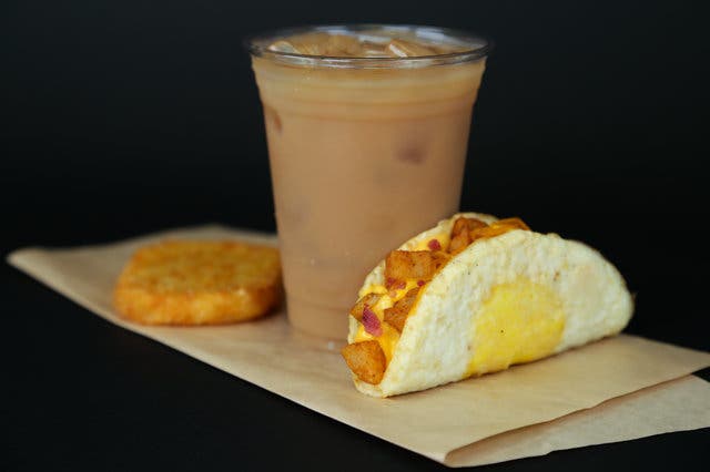 LAGUNA BEACH, CA —What's new for breakfast? Taco Bell is hoping to turn breakfast inside out with a "Naked Egg Taco," a concoction in which crispy potatoes, bacon or sausage and cheese are tucked in a fried egg "shell."