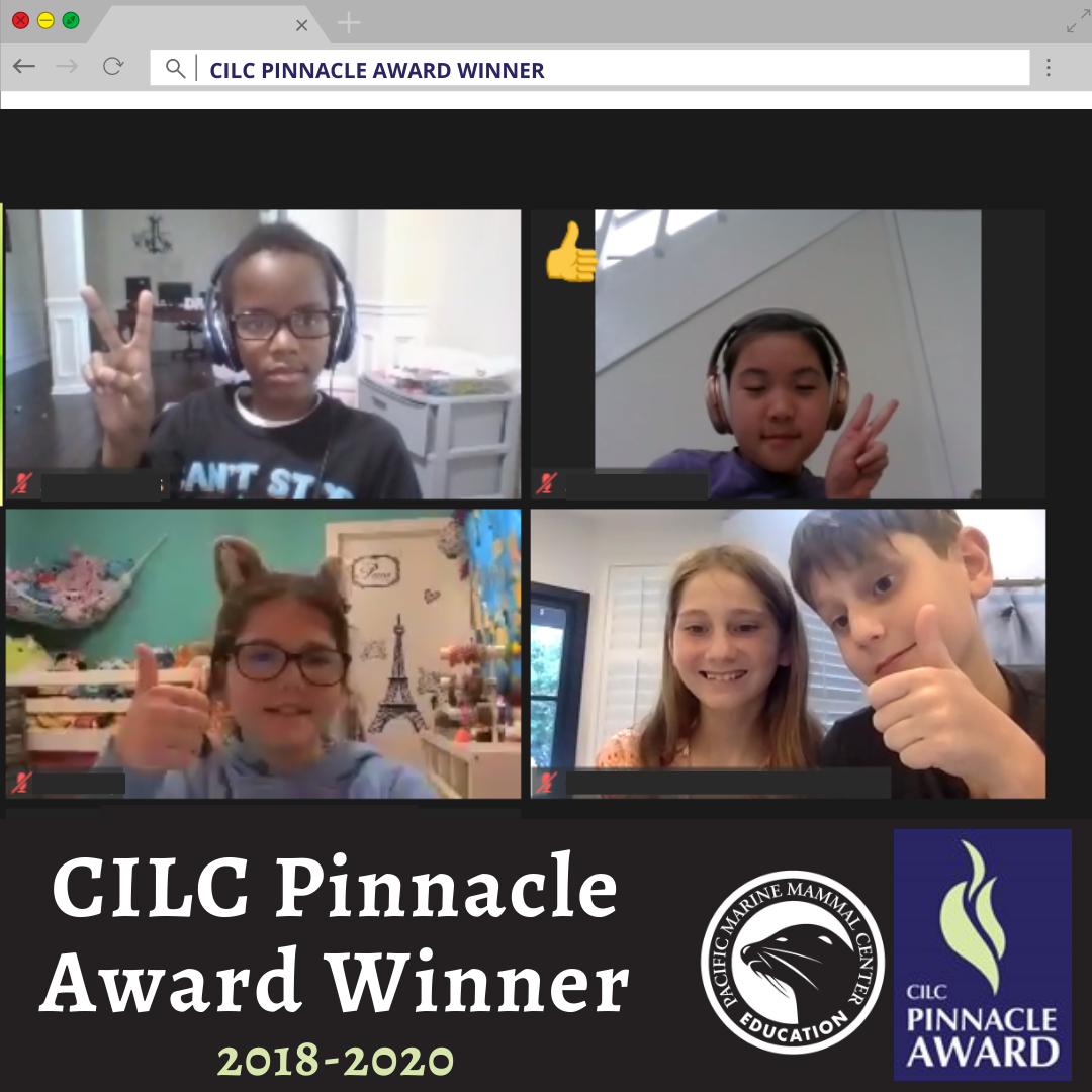 LAGUNA BEACH, CA — Pacific Marine Mammal Center received the Pinnacle Award for the 3rd consecutive school year for its Distance Learning Programs from the Center for Interactive Learning and Collaboration.