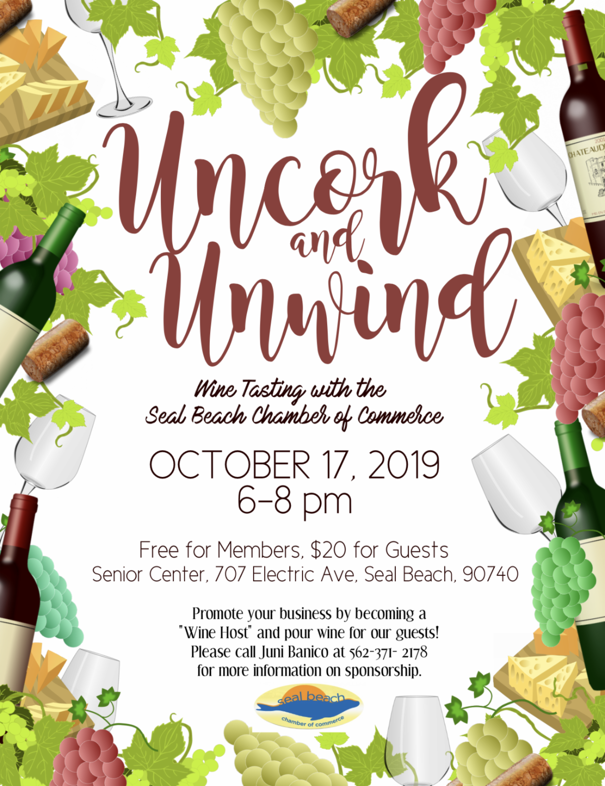 Later in the month, the Uncork and Unwind wine tasting with the Seal Beach Chamber of Commerce will take place at the Senior Center.