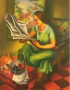 Fascinated with color theory from an early age, Alvarez studied the theosophical writings of Will Levington Comfort (1878-1932), which advocated among many things Eastern mysticism, meditation, and a belief that rays of color carry a vibratory quality, some intrinsic spiritual property, capable of awakening dormant aspects of divinity within a person. As luck or synchronicity would have it, in 1919, she became a student of Stanton MacDonald-Wright (1890-1973), who exposed Alvarez to the Synchromist Movement, aimed at evoking musical sensations through a symphony of colors. In this sense, the scales of the flowers in Garden give voice to the anonymous woman’s painted, pursed, silent lips.