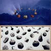 Coleman has been the Lead Pastor at Church By The Sea in Laguna Beach for nearly 13 years. All of the Field pieces, particularly Field Painting with Vessels, Arcs (2010-2011), reflect his fascination with the spiritual implications of geometric patterns, such as the Golden Ratio (1.618), which can be found in countless repeating forms in nature, from the seeds in the center of a flower, to the bracts of a pinecone, to the shell of a snail. Coleman incorporates the Golden Ratio into the dimensions of Vessels by centering a 5x3 foot rectangle within a similar 8x5 foot rectangle (all Fibonacci numbers). A grid of teapots and jars appears to rotate on an axis, a vanishing point just beyond view that simultaneously serves as the source of light. As a whole, the vessels start to resemble rays of harmonic light, the arc a cathedral ceiling.