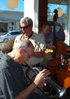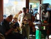 The band finishes off the morning by playing a few more tunes for folks on the patios and in the shop.