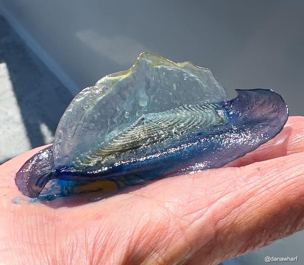 Although they look like one organism, they are actually many small beings that combine to form a bigger colony that floats across the ocean, driven by currents and the breeze, until they beach themselves, as has been recently seen from Newport Beach to Oceanside.