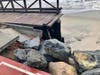 "The sidewalk is now buckling and leaning at the main entrance and may soon share the fate of two other major sections that collapsed in the past few months," Nelson said. "Chunks of concrete have eroded and heavy concrete benches and trash receptacles have been tossed into the storm-damaged parking lot like toys."