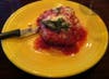 The entrées were served on bright yellow plates and looked delicious. I counted nine layers in the lasagne al forno. It was very dense, had lots of ricotta and was fantastic. My salmon livornese was a large piece of baked salmon covered with chopped tomatoes, whole olives, capers, onions and fresh basil. I loved this dish. The salty olives and capers were the perfect topping for the mild-tasting fish. It was served with fresh, cooked spinach, a new potato and lightly cooked carrots. I really enjoyed the vegetables. They made the whole meal seem like a home-cooked Italian meal.