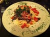 Before the salad, our waitress brought a plate of lovely, warm rosemary rolls along with some breadsticks. They were absolutely wonderful. The split house salad was fairly large. It came with beautiful greens, purple cabbage, shredded carrots, cucumber and tomato chunks and a delightful, slightly sweet, light dressing.