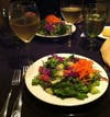 Starters include coconut shrimp, chicken vegetable pot stickers, tuna tartar, crunchy wrap (tortilla filled with beans, rice, pico de gallo, avocado and cheese) and warm stuffed dates. There are a large number of salads, many of which can be ordered in a petite size or dinner size.