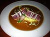 The ahi was well prepared and tasty. My husband enjoyed the soy sauce preparation as well as the wasabi potatoes. The coconut crunchy shrimp was the bright spot in the best of shrimp entrée. It was slightly sweet and crisp and was served with a great, spicy sauce.