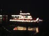 We both really enjoyed our meals, but while we were eating, the parade officially began at 7:30 p.m., right on time. What a fun dinner show. We had an excellent view. Some of the boats played Christmas music. Some honked horns and the patio diners cheered and waved at them or took photos. Some boats had dancers on board, and, of course, there were Santas and snowmen, candy canes and reindeer, just as I had hoped.