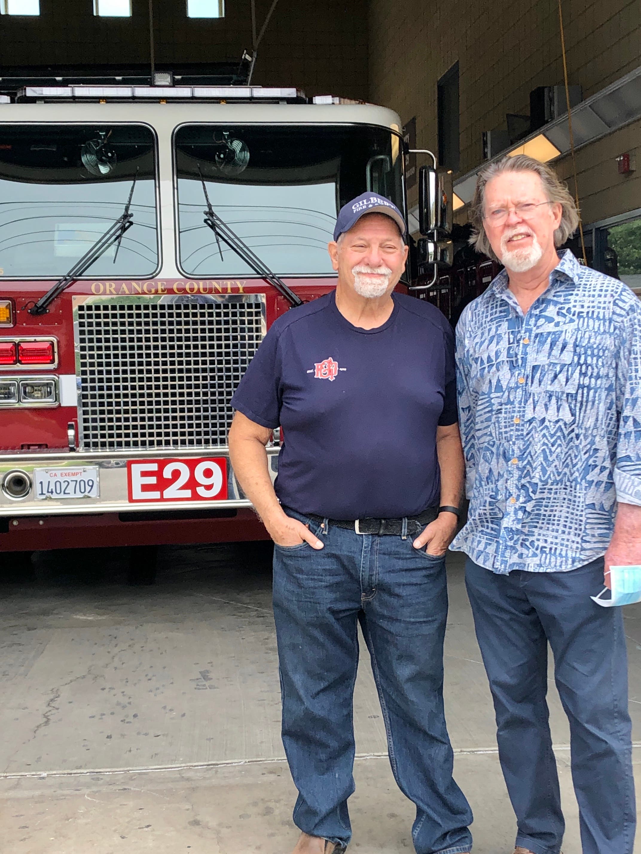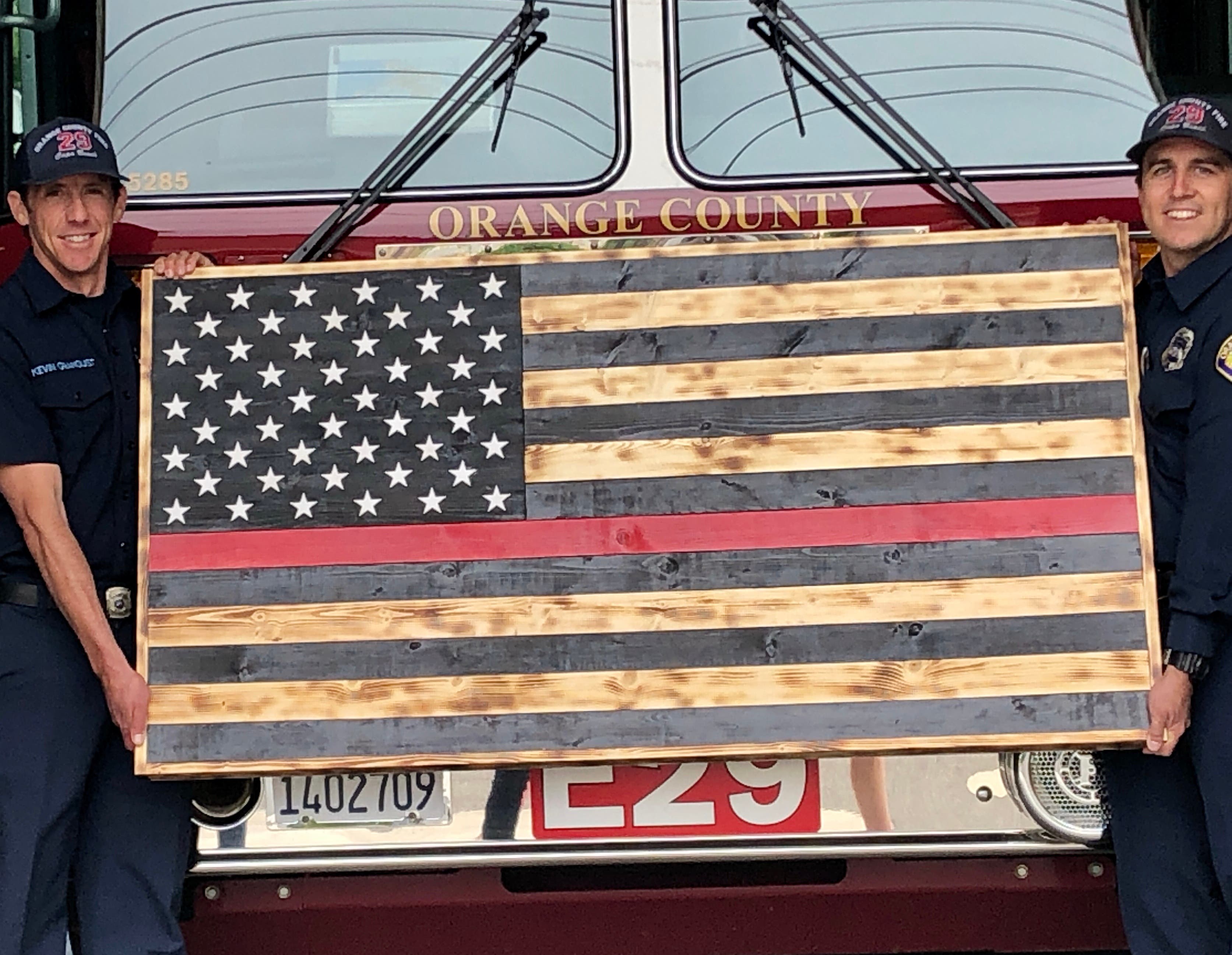 Retired Capistrano Beach businessman, Larry Robinson, is all about "community." In fact, he recently converted the Barrett/Robinson warehouse that served his company for the past 35 years into The Fish Tank - the community's first cultural events center. The local venue has hosted local artists and musicians and, in Larry's words, serves as "a place to celebrate creativity, collaboration, and community" in the Doheny Village area of Capo Beach. When he learned that his friend, Lt. Ira "Jim" Goode (ret.), a former firefighter with the North Maine Fire Department in Des Plaines, Illinois, was creating memorial flags in honor of the heroes who hold "the thin red line" he knew he had to commission a similar piece for nearby Station 29.